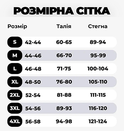 📌 Розміри: Охват стегон від 90 см до 130 см